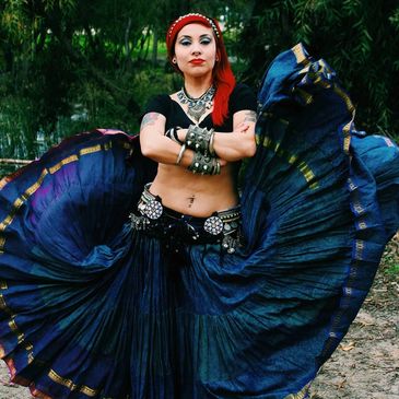 Stephanie’s belly dance journey began in 2008 in New Jersey, studying with a variety of instructors and dance styles. She soon realized that she had an affinity for tribal belly dance, falling in love with the jewelry, textures, textiles and costuming, but most importantly the sisterhood, love, and support that dance trou